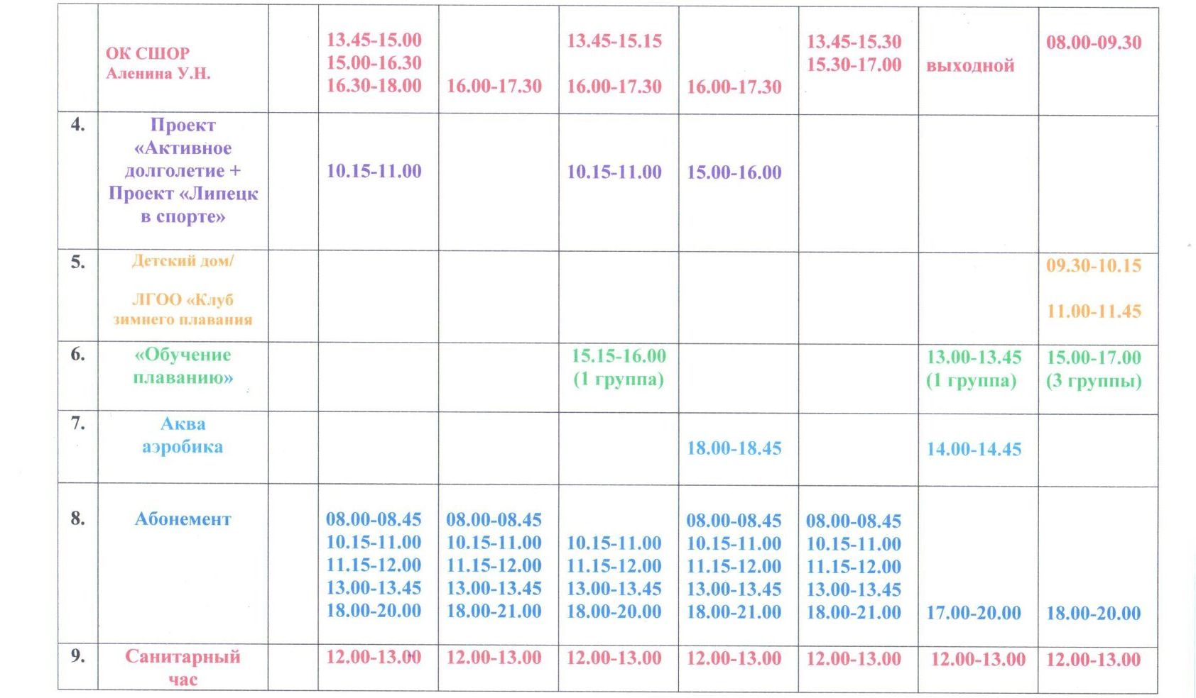 РАСПИСАНИЕ УЧЕБНО-ТРЕНИРОВОЧНЫХ ЗАНЯТИЙ В ПЛАВАТЕЛЬНОМ БАССЕЙНЕ