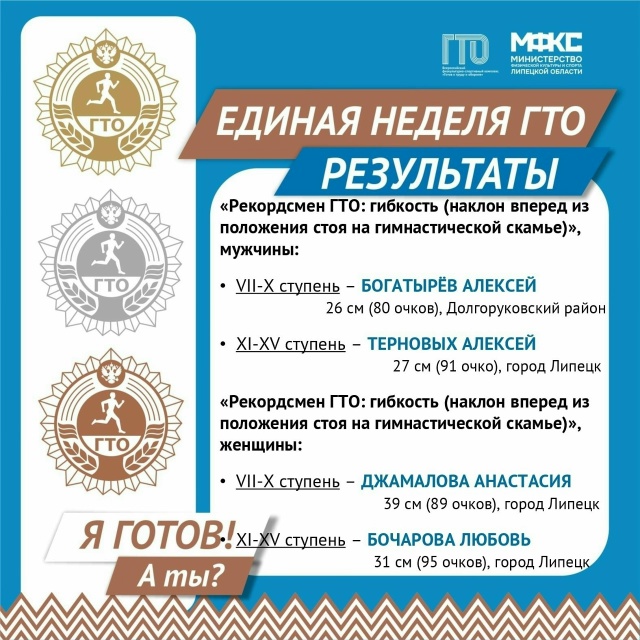 С 13 по 19 октября во всех муниципальных районах, городских и муниципальных округах Липецкой области прошла Единая неделя ГТО, в рамках которой состоялась акция «Иду на рекорд».