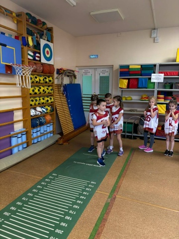 Юные ГТОшки выполняли: наклон вперёд из положения стоя на гимнастической скамье, прыжок в длину с места толчком двумя ногами, поднимание туловища из положения лёжа на спине, челночный бег, бег на 10м, метание теннисного мяча в цель, бег на 10 м, бросок набивного мяча (1кг)!