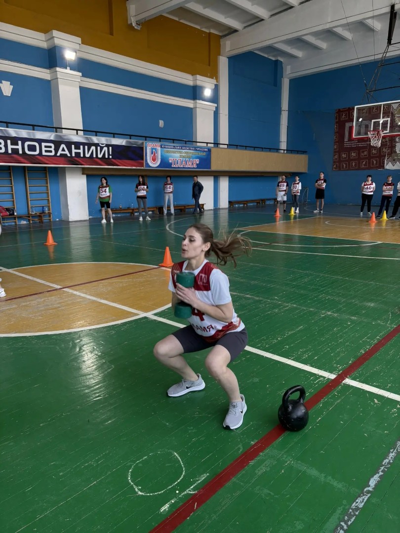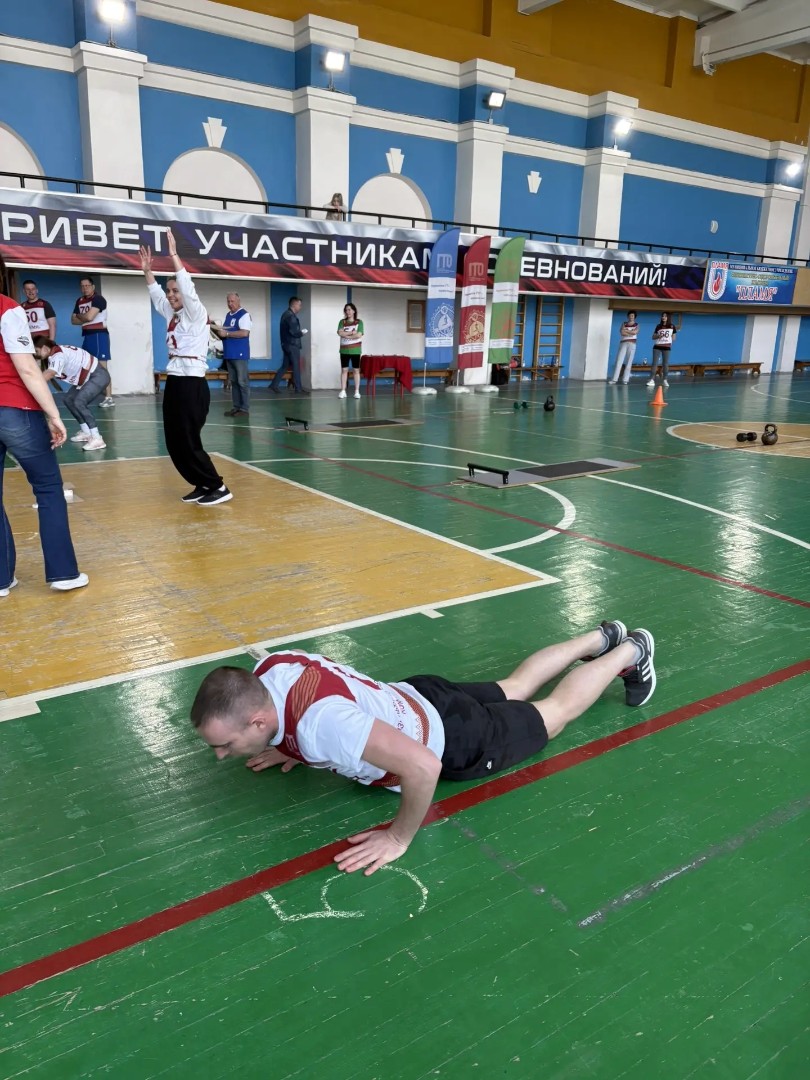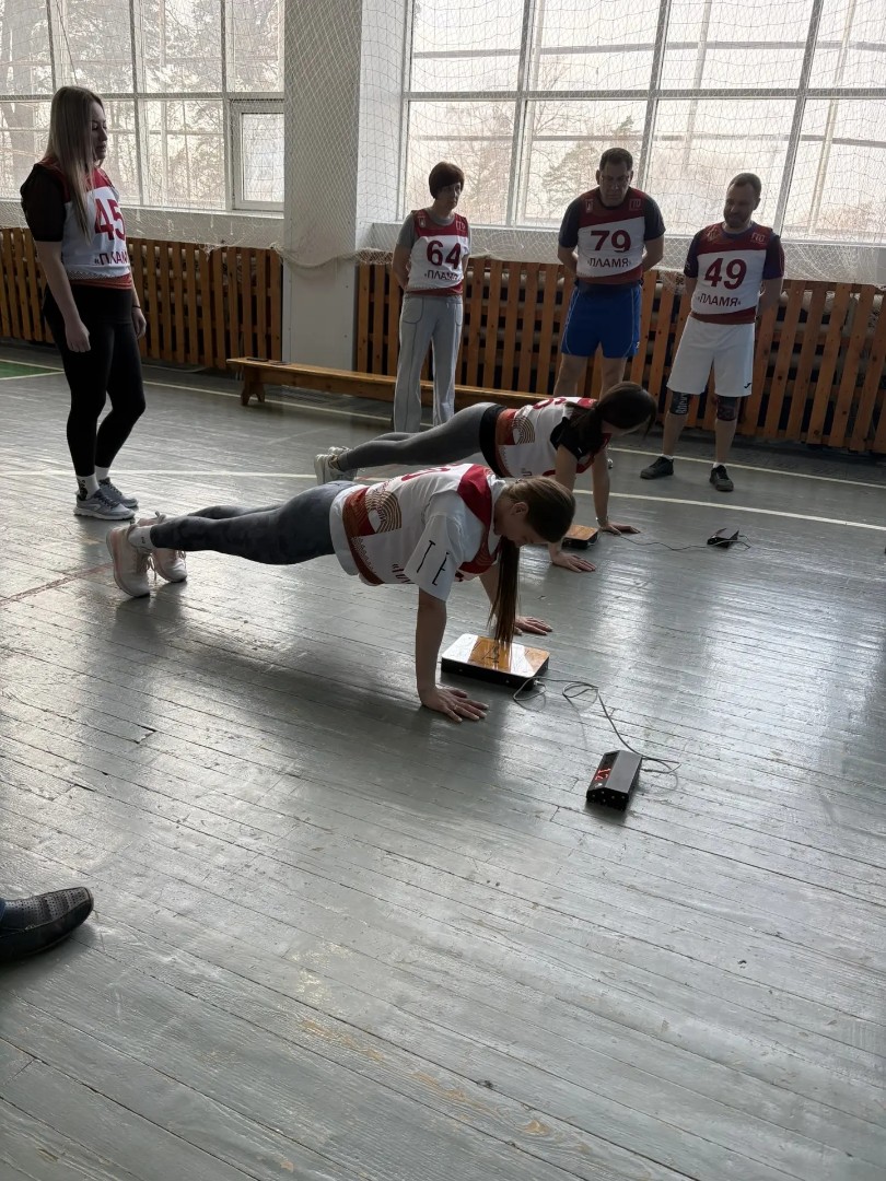 «Эстафета ГТО» – где участники выполняли челночный бег, присед с отягощением - 16 кг для мужчин и 8 кг для женщин, прыжки в длину, сгибание и разгибание рук в упоре лежа с выпрыгиванием вверх и хлопком над головой двумя руками (берпи).