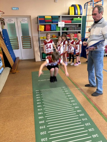 Юные ГТОшки выполняли: наклон вперёд из положения стоя на гимнастической скамье, прыжок в длину с места толчком двумя ногами, поднимание туловища из положения лёжа на спине, челночный бег, бег на 10м, метание теннисного мяча в цель, бег на 10 м, бросок набивного мяча (1кг)!