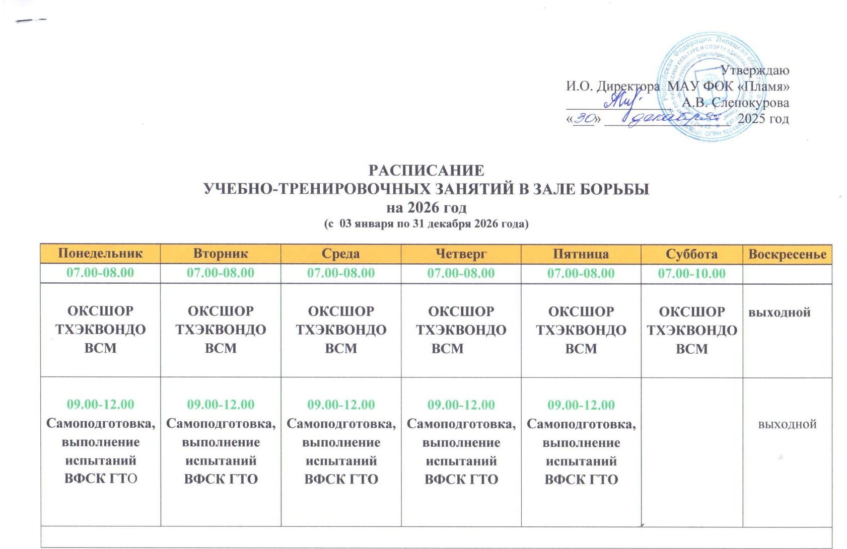Расписание учебно-тренировочных занятий в зале борьбы на 2026 год